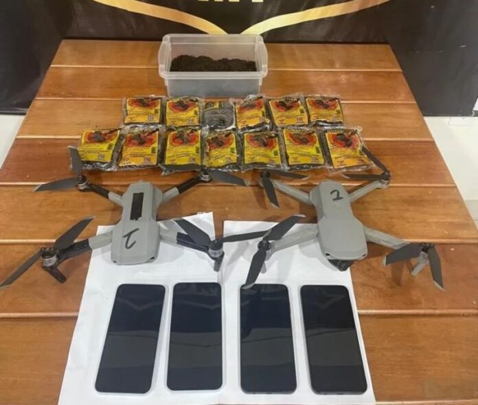 Já próximo da meia-noite, um segundo drone foi localizado e abatido pelos policiais penais. Ao todo, foram apreendidos dois drones e quatro smartphones.