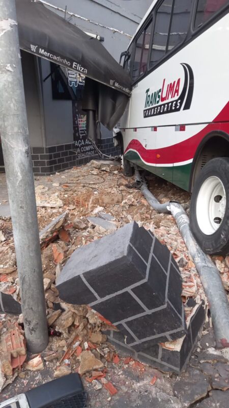 Após a colisão, o micro-ônibus ainda bateu em uma mureta e por pouco não invadiu um comércio. O carro, por sua vez, ficou destruído no acidente.