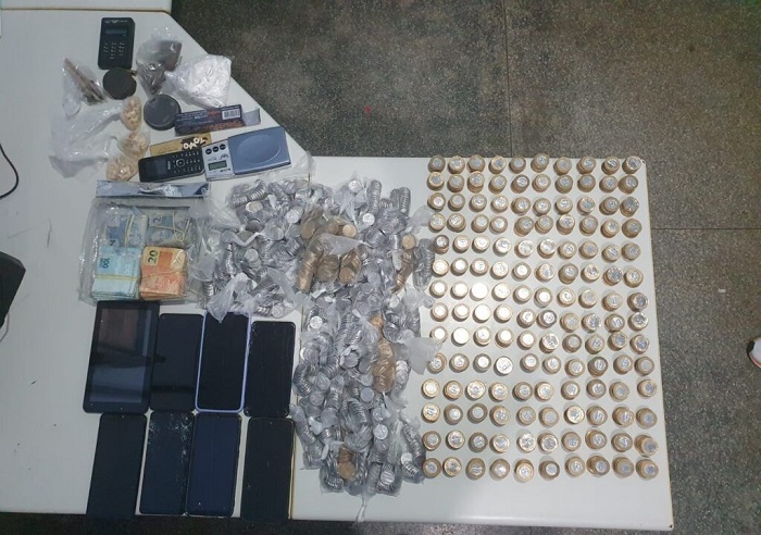 Conforme o titular, com os demais foram apreendidas porções de maconha, oxi e cocaína, além de R$ 11.750 em espécie, proveniente do tráfico de drogas praticado pelos infratores e oito aparelhos celulares.