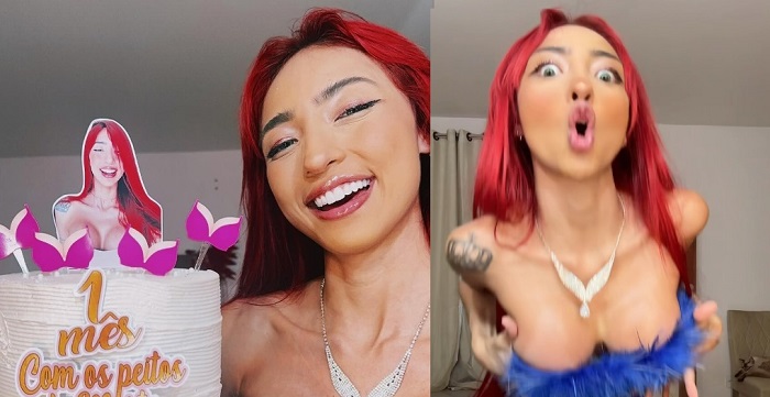 Ruivinha de Marte publicou um bolo para comemorar o aniversário de um mês do silicone novo, mas acabou levando peia nas redes sociais. Desde que colocou a prótese, a influenciadora amazonense só fala disso. Pelo jeito tem muita gente enjoando do papo.