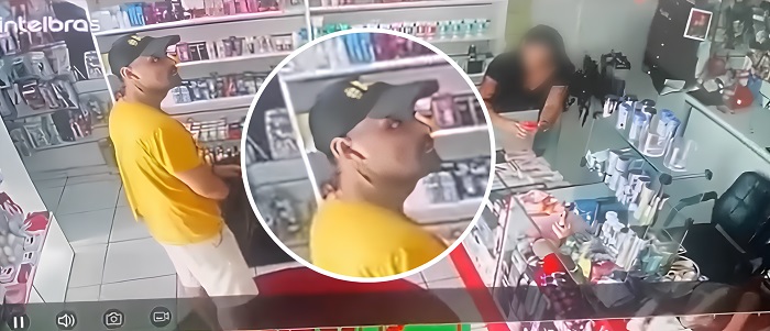 Conforme as imagens, a funcionária estava sozinha, sem clientes, quando o homem chegou mostrando a arma na cintura. Ela estava mexendo no celular e logo o assaltante retira da mão da mulher e ela começa a chorar.