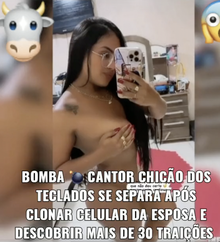 No entanto, internautas relataram que Chicão, na verdade, clonou o celular da companheira e descobriu mais de 30 ‘chifres’, além de fotos sensuais que supostamente ela mandava para outros.