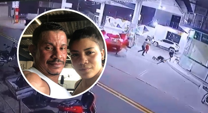 Imagens de câmeras de segurança registraram o crime. O vídeo mostra que o casal estava conversando tranquilamente com um frentista de um posto de combustíveis.