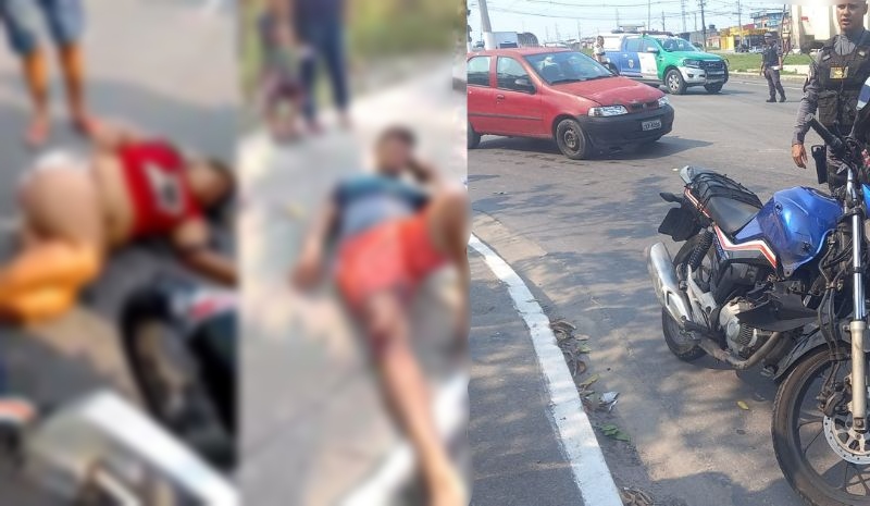 Um casal em uma motocicleta colidiu com a traseira de um carro durante um acidente de trânsito na manhã desta sexta-feira (19) na Avenida das Flores, zona norte de Manaus. O motociclista teve uma fratura exposta na perna direita e a mulher teve uma fratura no ombro esquerdo.