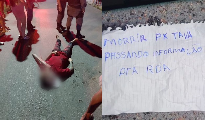 Após o crime, o corpo do homem ficou jogado no meio da rua, com um bilhete ao lago que dizia: “Morri porque tava passando informação pra RDA”.