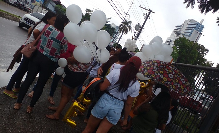 Manaus – Familiares de detentos realizam um protesto em frente ao Fórum Ministro Henock Reis, na manhã desta terça-feira (14), no bairro São Francisco, em Manaus. A ação ocorreu por conta da suspensão de todas as visitas, parlatórios virtuais e escoltas externas por cinco dias, em todas unidades prisionais da capital.