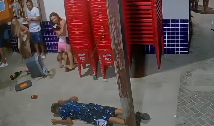 Vídeo que circula nas redes sociais mostra o momento do crime. Várias pessoas estão no local e começam a correr ao ouvir o barulho de tiros. A vítima aparece nas imagens também correndo e cai no chão.