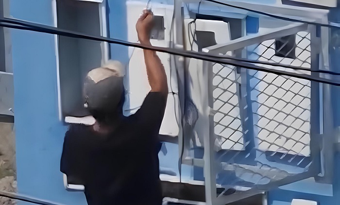 O homem foi flagrado por um morador do local que registrou toda a ação criminosa. Nas imagens é possível ver o homem cortando os fios da residência, em seguida, ele joga o objeto dentro da casa e pula o muro.