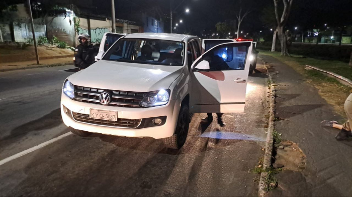 As autoridades locais foram informadas sobre o ocorrido e as viaturas da cidade observaram o carro em fuga na direção de Juiz de Fora. Durante a perseguição, os policiais avistaram um veículo correspondente às características descritas. Uma ordem de parada foi emitida, mas o condutor iniciou uma tentativa de fuga, sendo interceptado já em Juiz de Fora, situada a 283 km da capital mineira.