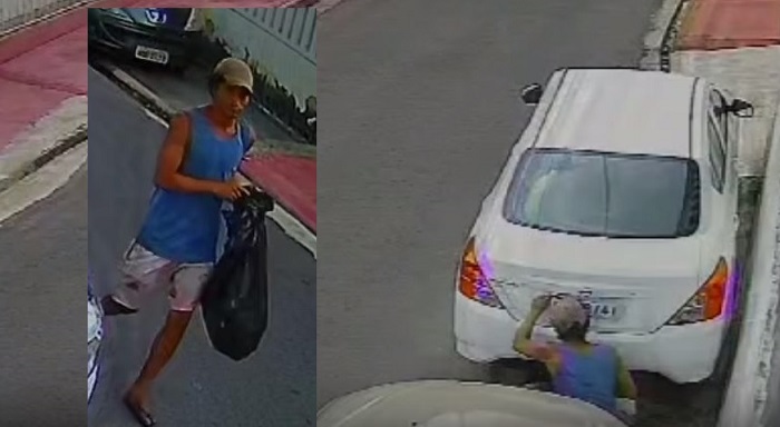 Vídeo mostra suspeito furtando lacre de placas de carros em Manaus