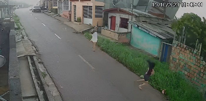 Nas imagens, é possível ver o telhado sendo arrancado pela força do vento e arremessado longe. Duas jovens que passavam pelo local no momento da ventania, quase foram atingidas pelo telhado da residência.