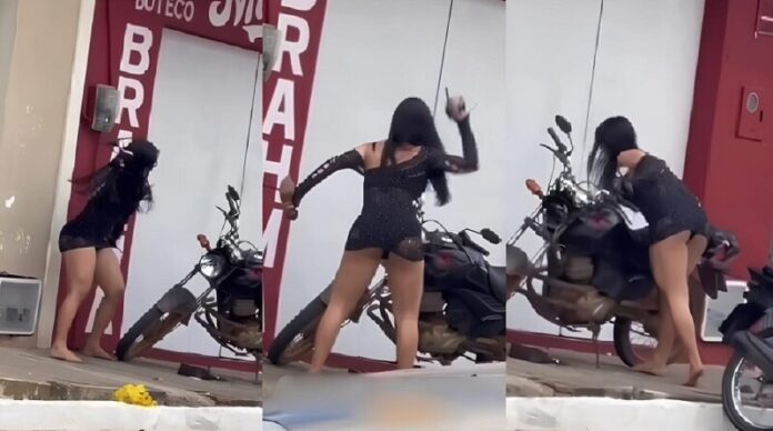 Nas imagens, a mulher aparece exaltada, desferindo diversos golpes com o salto contra a moto, enquanto grita e afirma ter sido traída. Um amigo da jovem acompanha a situação, que teria ocorrido após ela retornar de uma festa.