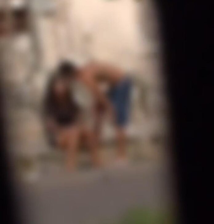 No vídeo, é possível ver a mulher em uma calçada, sendo enforcada e agredida com socos no rosto.