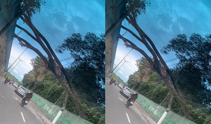 A árvore tombou sobre a fiação elétrica na avenida Rodrigo Otávio, na zona leste de Manaus, na tarde desta segunda-feira (15), atingiu e bloqueou o trânsito de veículos no viaduto Gilberto Mestrinho, no sentido bairro.
