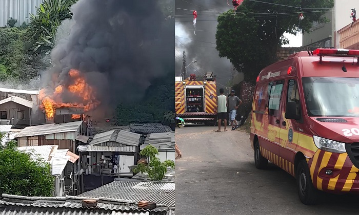 Vídeos que circulam nas redes sociais mostram a proporção do fogo e da fumaça preta que causou preocupação em moradores próximos da casa.