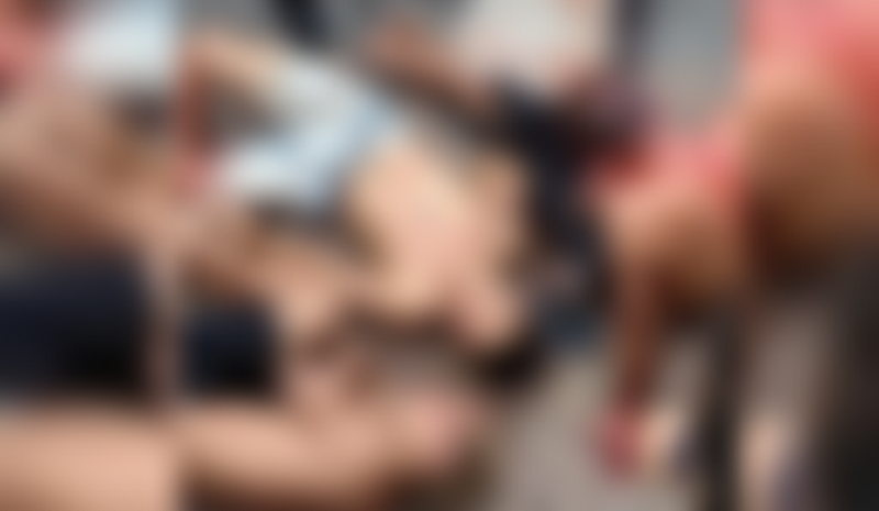 Conforme as imagens, os homens aparecem caídos do chão sangrando muito, após terem sido espancados.